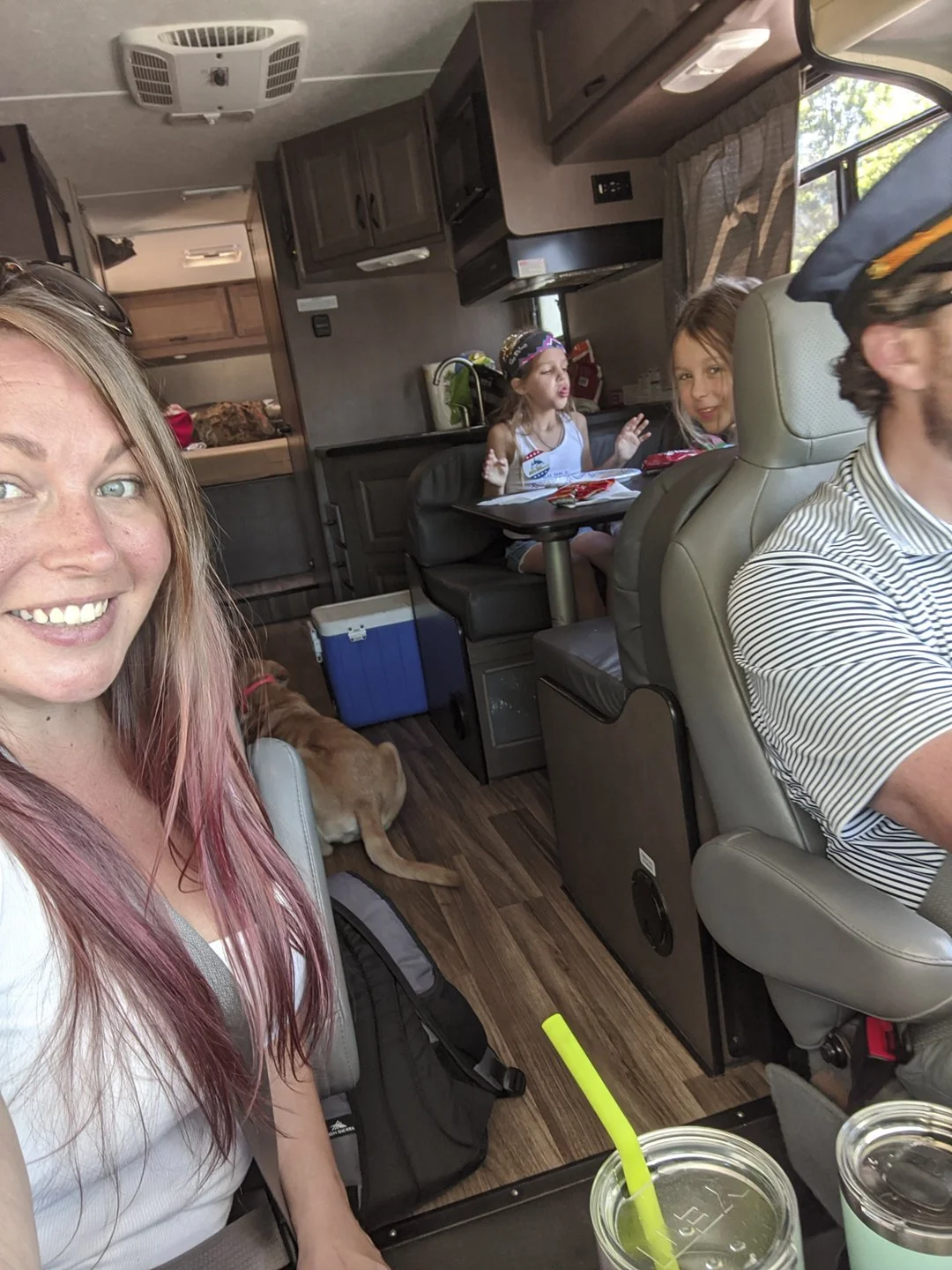 Monika of Go Rving with her family in a motorhome.